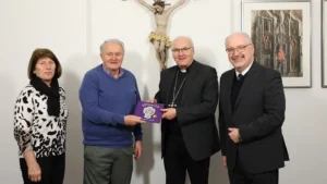„Die Pfarrei erzählt“ Regensburg, 5. Dezember 2025 Am vergangenen Freitag besuchten Pfarrer Hans-Jürgen Koller, Rupert Venus und Brigitte Venus in Regensburg Bischof Dr. Rudolf Voderholzer. Anlass ihres Besuches war das im März erschienene Buch „Die Pfarrei erzählt“ von Rupert Venus. Darin macht der Autor die Pfarrei St. Martin, gelegen in Markt Schwarzach im Landkreis Straubing-Bogen, … [weiterlesen…]