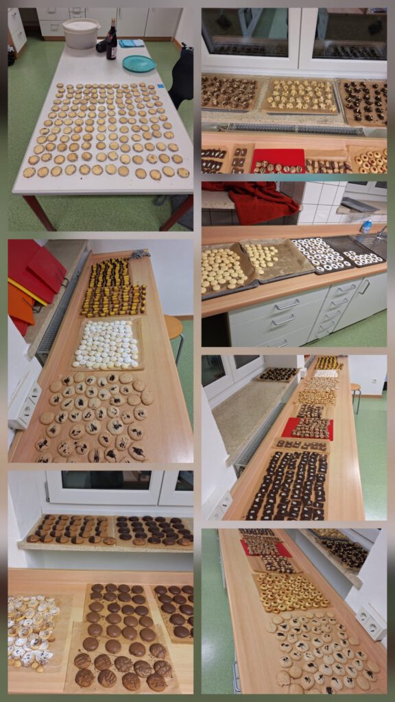 Fleißige Kolpingfrauen und Männer, zusammen mit ihrem Präses Pfarrer Hans-Jürgen Koller, zauberten an diesem Abend tolles Backwerk und freuten sich sichtlich über das gelungene Ergebnis. Feine Plätzchendüfte zogen durch das Schulgebäude.