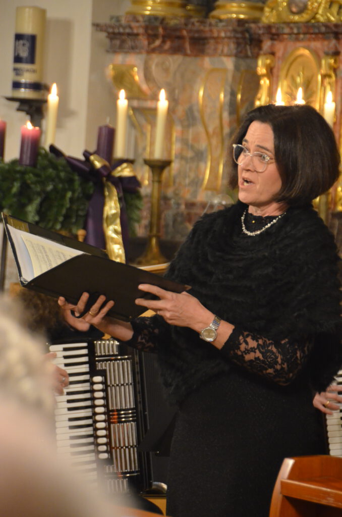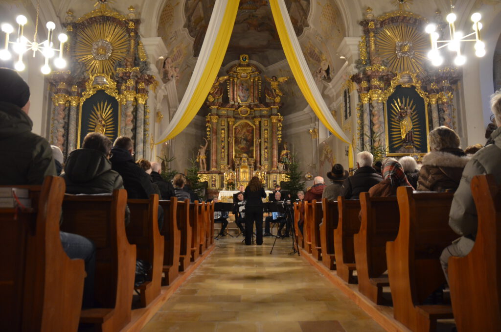 Ausstattung, darunter Pauken, Schlagzeug und Xylophon. Die musikalische Leitung zu diesem Adventskonzert übernahm Ines Peringer. Andrea Karl-Brandl (Alt), bekannt durch zahlreiche regionale und überregionale Auftritte (u. a. an der Bayerischen Staatsoper) sowie diverse Chorprojekte, sowie Julia Benkert (Sopran) bereicherten das Konzert als Solistinnen.