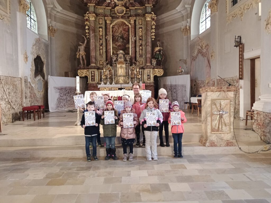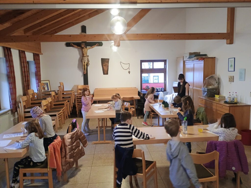 Zum Abschluss durften die Kinder noch kreativ werden und eine Malvorlage des Vaterunser farbig gestalten, die dann in der Kirche bei einer Abschlussandacht aufgehängt wurde.